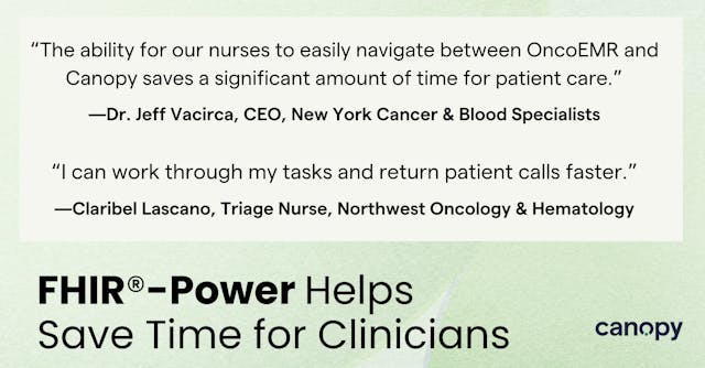 “Adopting new technologies is critical to delivering the highest quality care, but we want to be sure our staff can focus on that patient care, not the systems. The ability for our nurses to easily navigate between OncoEMR and Canopy saves a significant amount of time for patient care."