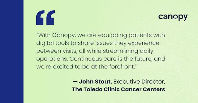 “Our goal is to provide patients with the highest quality of care, both inside and outside The Toledo Clinic. To do this, we are transitioning to a more continuous care delivery model. With Canopy, we are equipping patients with digital tools to share issues they experience between visits, all while streamlining daily operations. Continuous care is the future, and we’re excited to be at the forefront.”